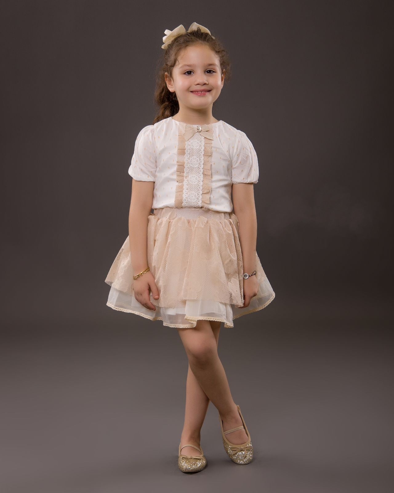 Cet ensemble beige et blanc pour fille est une tenue élégante et confortable pour toutes les occasions.